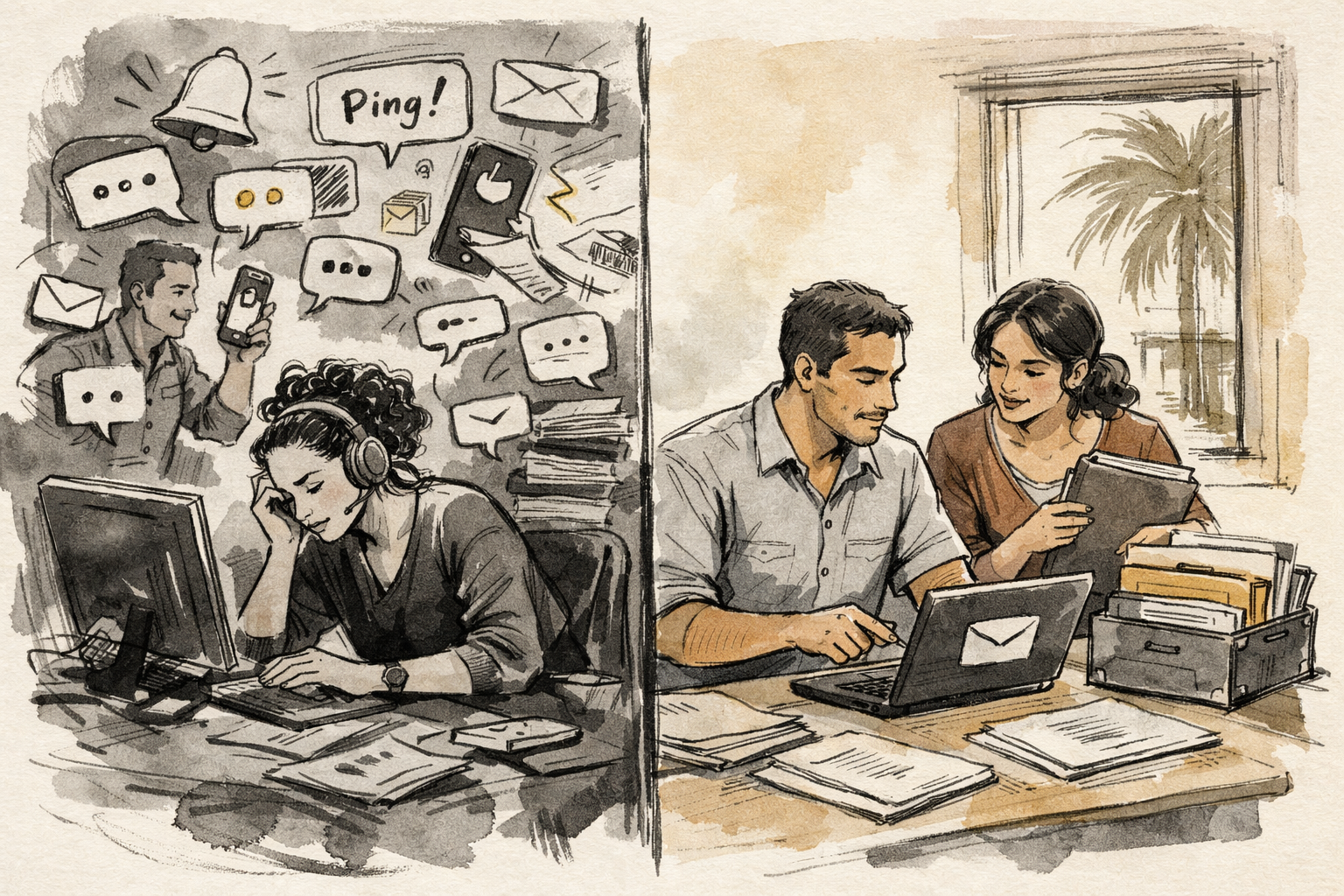 Luego hacen un ajuste sencillo: separan urgencias de no urgencias, dejan email para propuestas y seguimiento, usan mensajería para coordinación breve y mueven tareas fuera del inbox. No eliminaron trabajo. El trabajo dejó de llegarles de la forma más caótica posible.